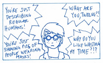 I had so much fun featuring her that I thought it would be a good idea to write some sort of fictional origin story. By this time, I had run out of ways to hide her face, so I was thinking of hiding it with sunglasses or some sort of mask. Since at the time I liked cyberpunk / steampunk things (still do), I designed her with a gas mask (very poorly drawn throughout the story, by the way), and so Shelly's now iconic look was established!